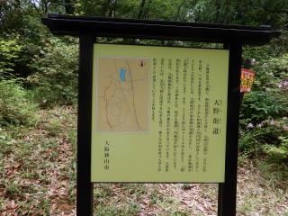 休憩所前に天野街道の案内が記されています |